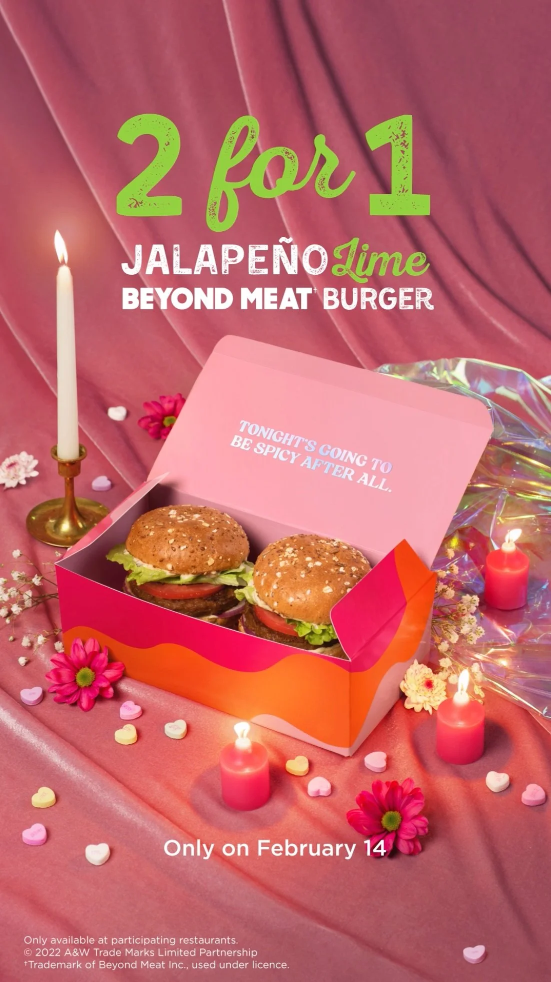 For anyone who forgot Valentines this year, there’s a spicy 2-for-1 Burger deal for you.