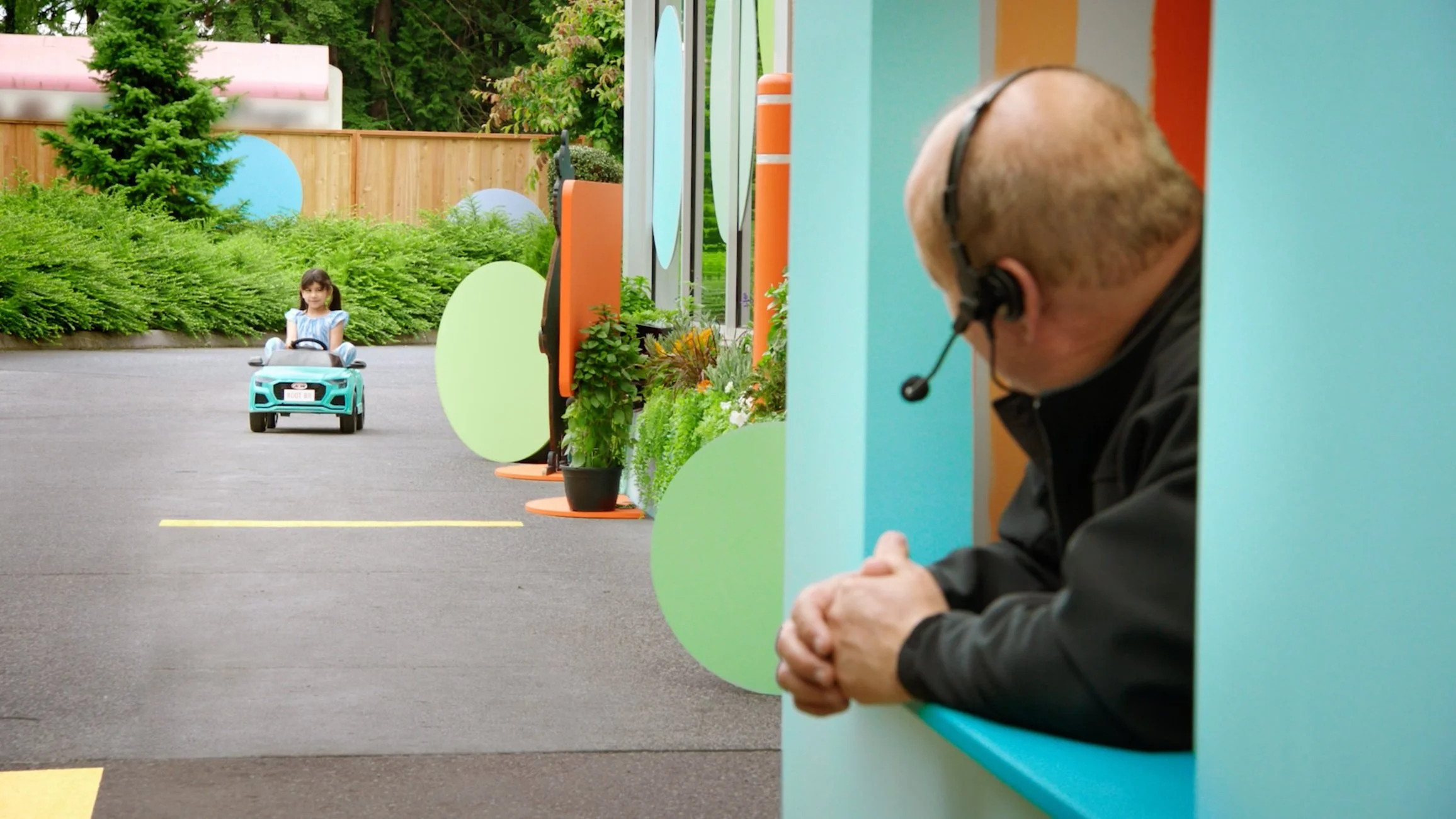 A&W made a tiny drive thru for kids to order their new Kids Pack.